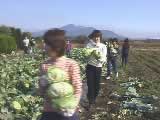 ![]() コスモスの咲く頃,ちょっと寒い日が続きました。キャベツの定植を指導してくれた先生方に,収穫の仕方を教わる。 ![]() 早速キャベツの収穫。大きくなったキャベツ。うれしいな。 ![]() ちょっと食べてみようか。収穫したキャベツを集めよう。 ![]() トラックに積んで,とりあえず作業終了。休憩には,名札の台紙に使用した,あの野菜生活(缶だけど)を飲む。 最後に集合写真を撮って,キャンプ場(収穫祭会場)へ向かう。 ![]() 炭に火をつける。平行して,パンの生地を作る。恒例のおっちゃんによる乾杯! ![]() バーベキュー開始。パンを焼く!すご〜く,美味しい。プラス,チーズケーキ,とっても美味しい。 JA沢田青年部の皆さん,お世話になりました。 ![]() 初めての焼きマシュマロ。体型同じのトリオ。可笑しすぎる。 二次会場(男子部屋)で,乾杯!宇宙宴開始。 恒例のライブ。今回は,アコ付き。袢纏似合いすぎだぞ! ![]() 翌日は,温泉センターに行って,その後,あるカップルは名物の蕎麦を食べに行く・・・。 日曜日も雨の中,キャベツの発送作業が行われた。ご苦労様でした。 関係者の皆さん無事日程を終了することができました。大変ありがとうございました。